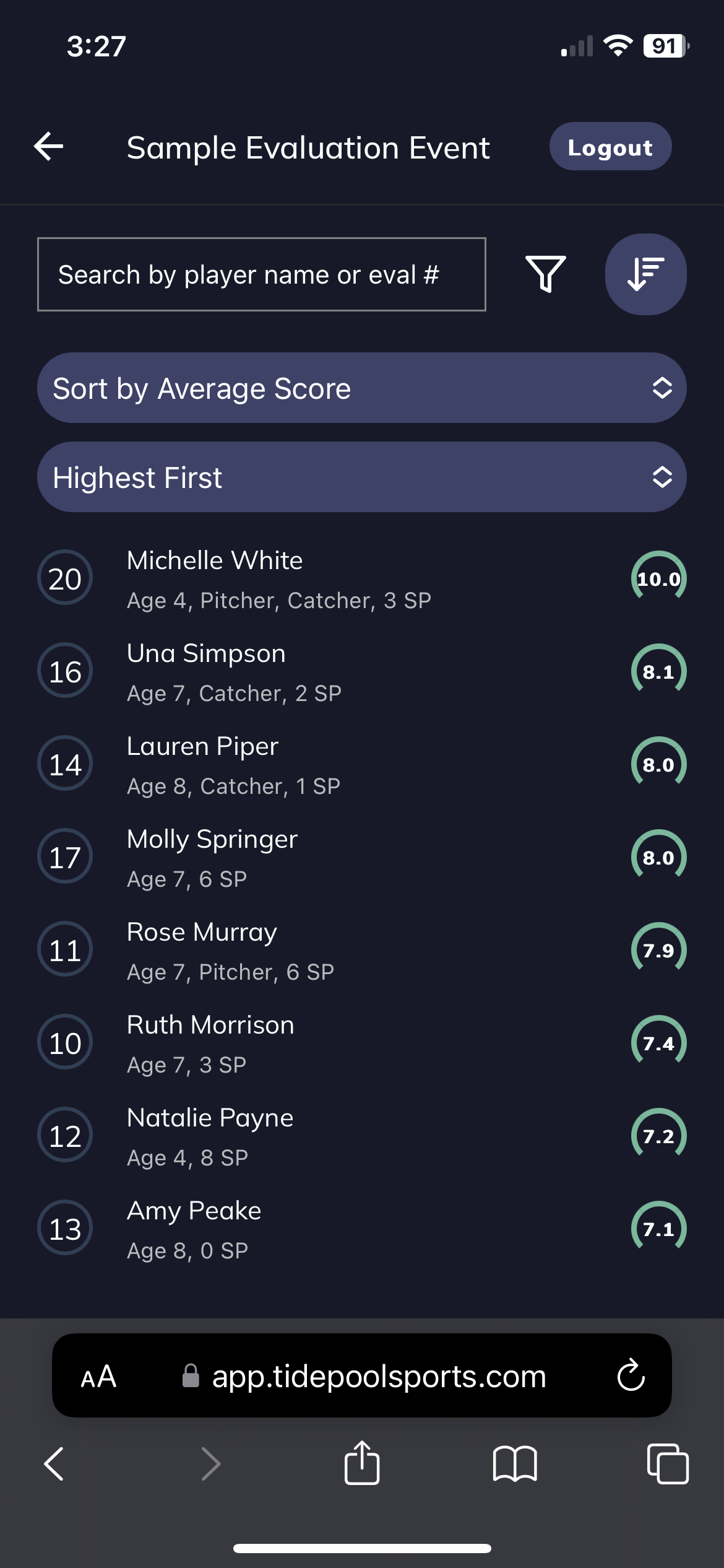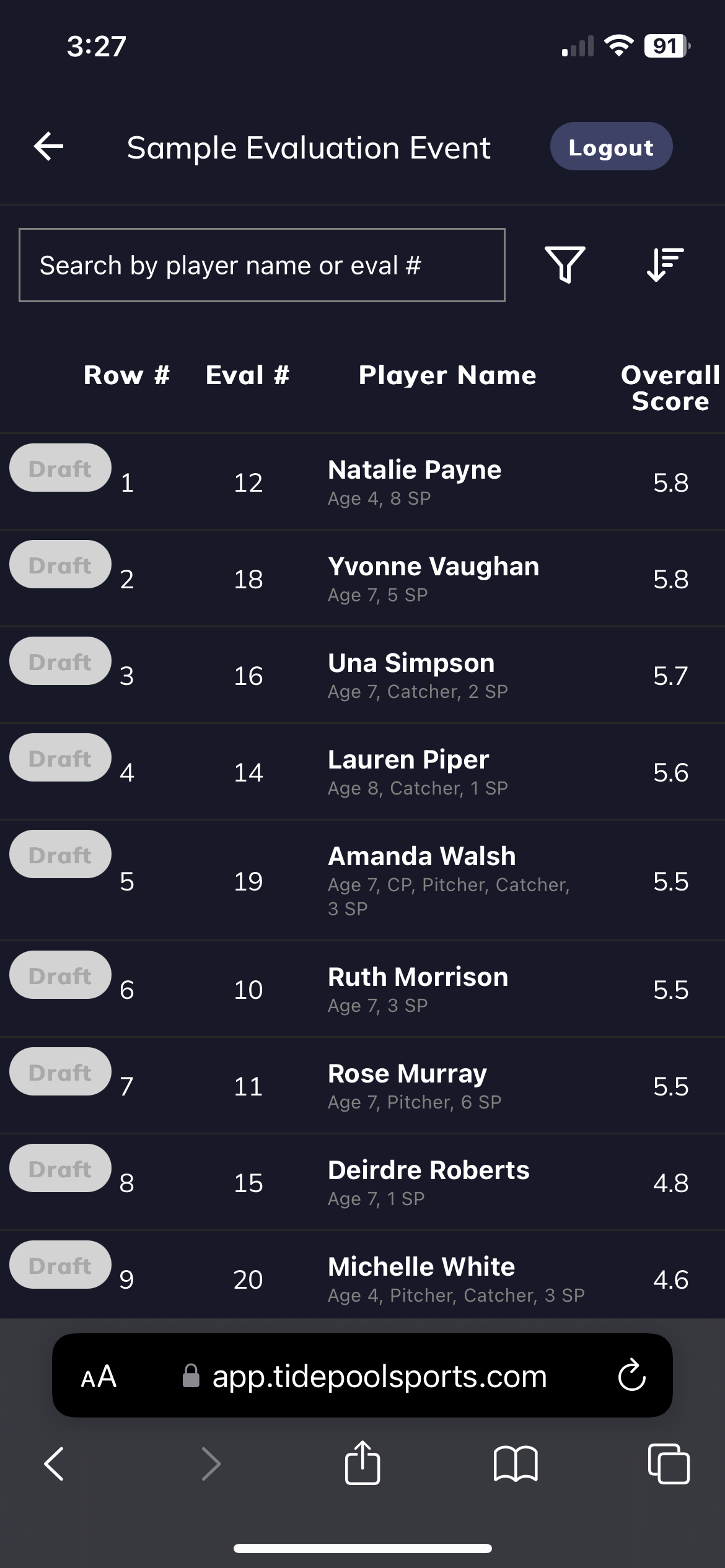 “I can’t believe it took us this long to modernize our evaluation and draft process. We were still using clipboards and printouts, and our scoring system lacked the detail we needed. Now, with evaluation scores feeding directly into the draft tool, our managers can sort and prioritize players all in one place. And the best part? We can run the entire draft remotely. The Tidepool Sports app just made too much sense for us.”
